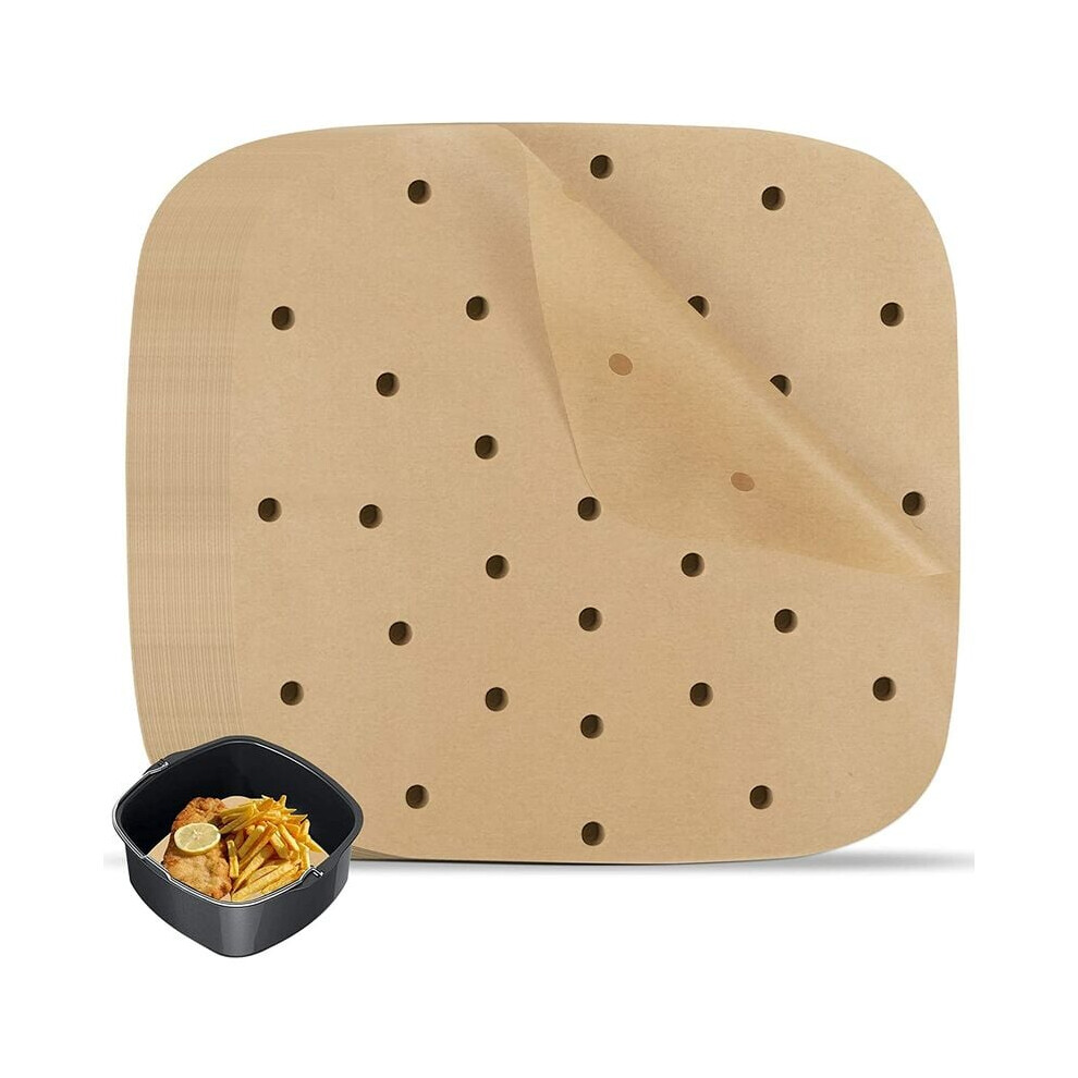 Health & Tasty Air Fryer Liners, Perforated Non-Stick Square Parchment Paper for Waterproof Greaseproof Cooking, Food Grade Pulp Sheets Designed with