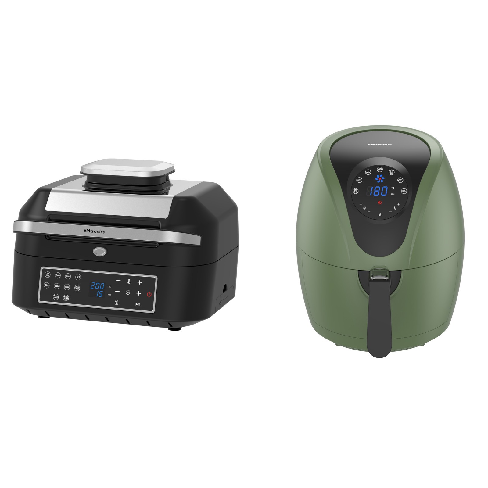 Emtronics Air Fryer Kitchen Set - 4.5L Sage Green & 6.3L Health Grill