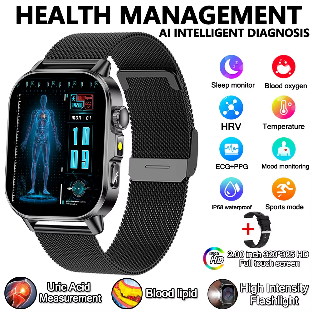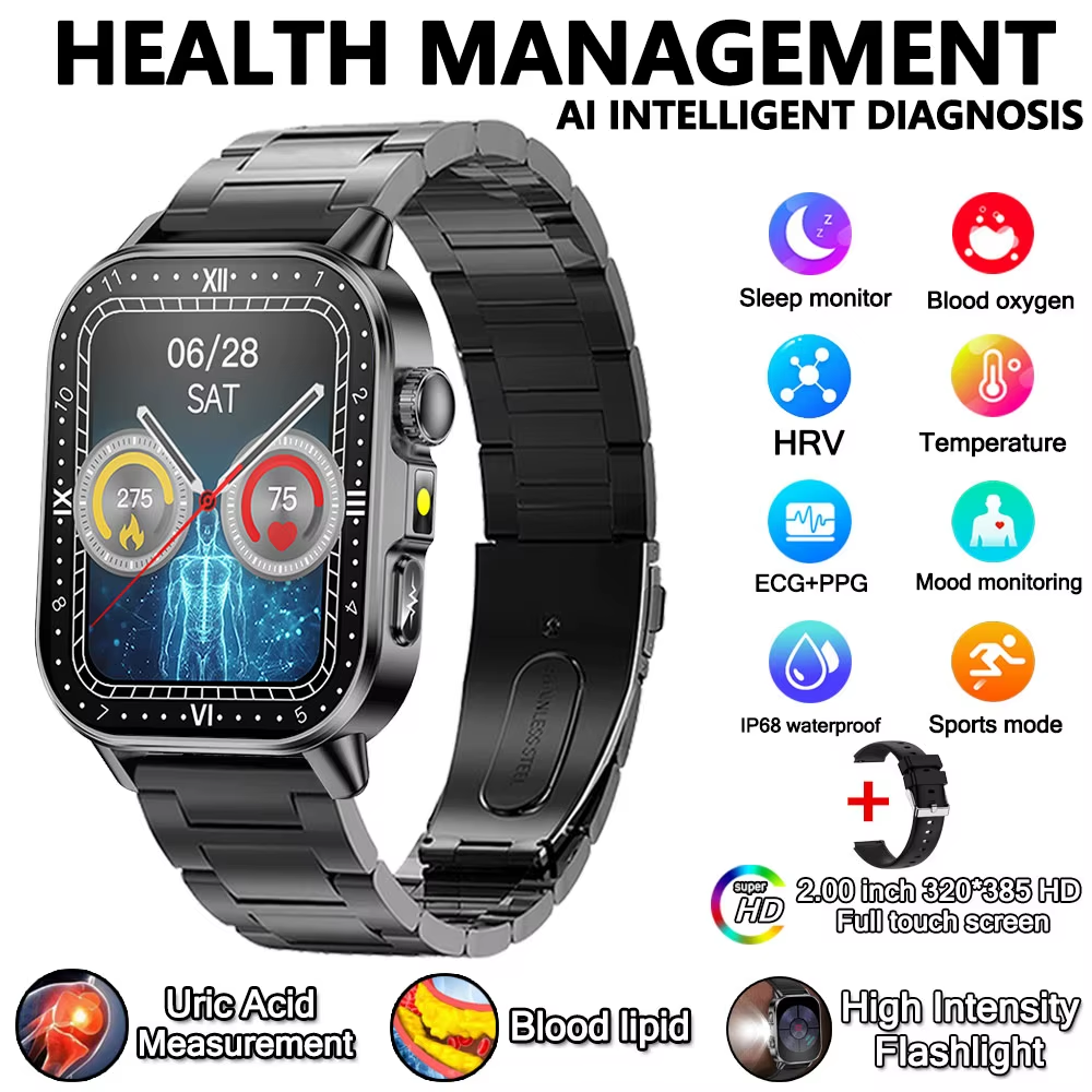2026 New Model Uric Acid & Lipid Health Analysis Smart Watch Men ECG+PPG Bluetoo