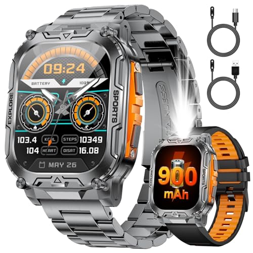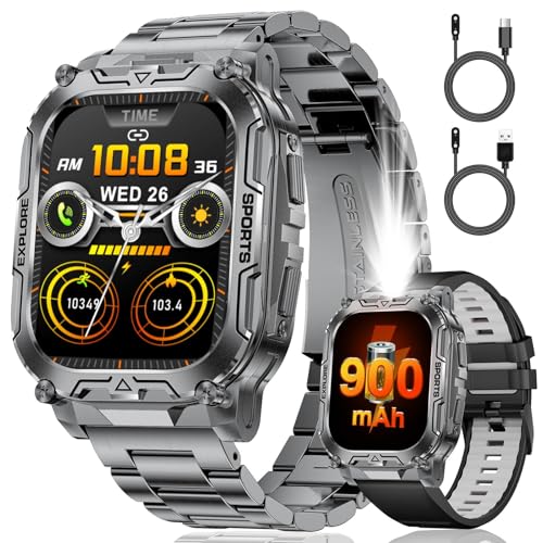 SUNKTA Military Smart Watch for Men with 900mAH,2.01" Smartwatch with Bluetooth Call.100+ Sports Modes,Health Tracker,Multifunctional Smart Watch for Android iOS 2 Straps,2 Chargers