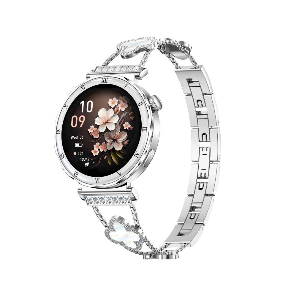 (Silver dial + silver steel belt) Chronus 1.19-inch HD screen with Bluetooth call female health monitoring smart watch