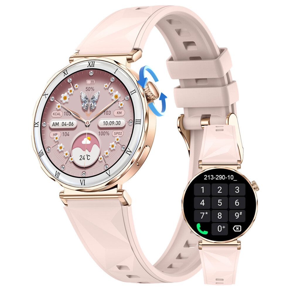 (Gold dial + pink tape) Chronus 1.19-inch HD screen with Bluetooth call female health monitoring smart watch