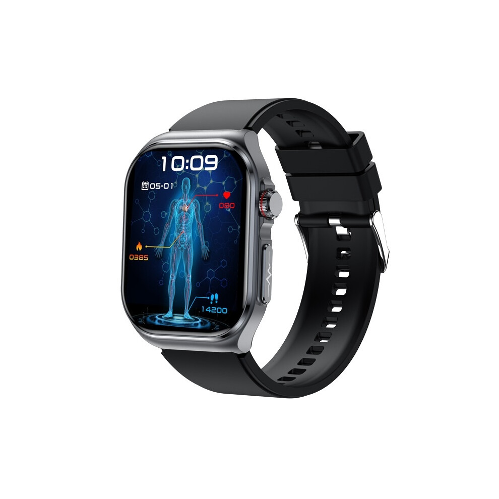 (Black Silicone) Smartwatch ECG Heart Rate Blood Pressure Blood Glucose Health Monitoring Smart Watch