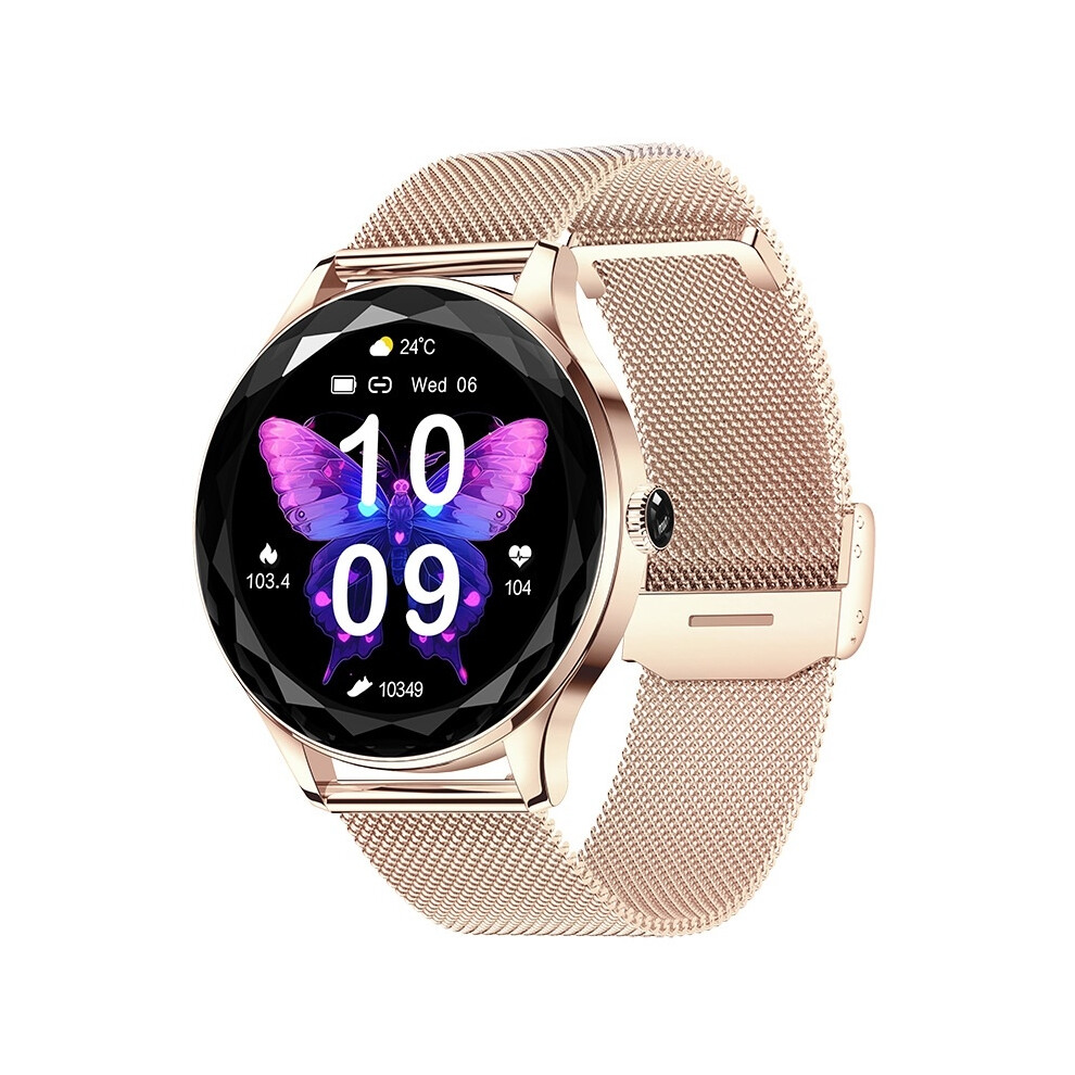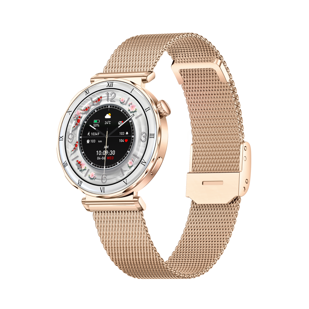 (Gold dial + gold mesh strap) Chronus 1.19-inch HD screen with Bluetooth call female health monitoring smart watch