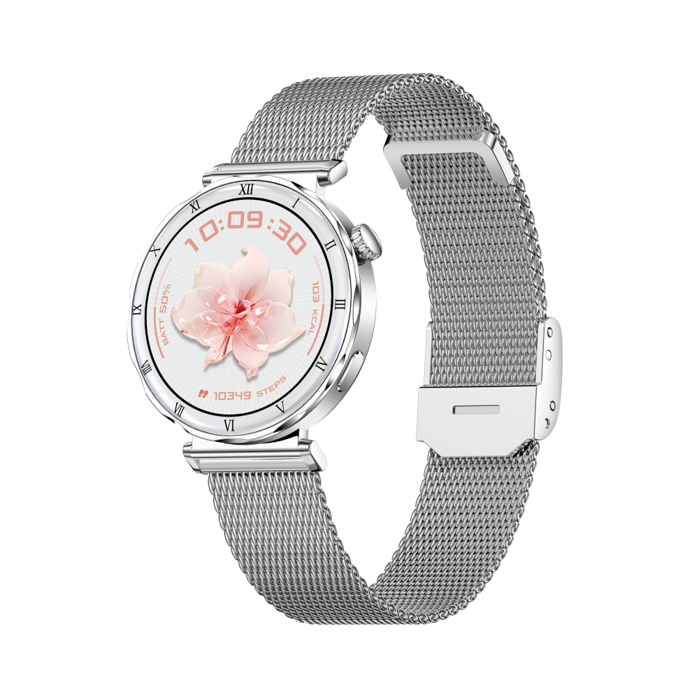 (Silver dial + silver mesh strap) Chronus 1.19-inch HD screen with Bluetooth call female health monitoring smart watch