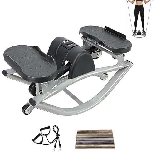 Health Fitness Mini Stepper for Exercise at Home, Rock Stepper Side to Side, Aerobic Workout Machine Fitness Equipment Suitable for Apartment Dormitory, Resistance Bands Non-Slip Mat(Gray)
