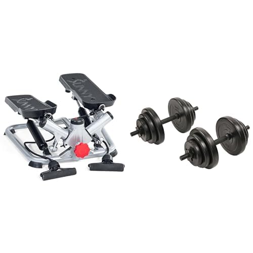 Sunny Health & Fitness Advanced Twist Stepper Machine with Resistance Bands - SF-S0979 + Exercise Vinyl 18 KG Dumbbell Set Hand Weights for Strength Training - NO.087