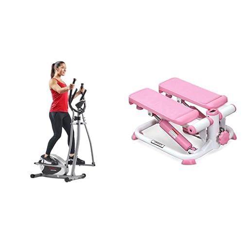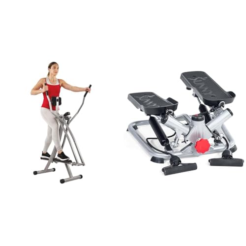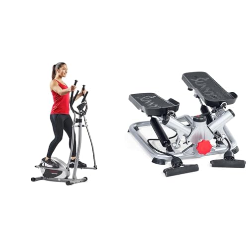 Sunny Health & Fitness Advanced Twist Stepper Machine with Resistance Bands - SF-S0979 + Stepping Elliptical Machine, w/Ultra- Quiet Magnetic, Low Impact, Cardio Equipment