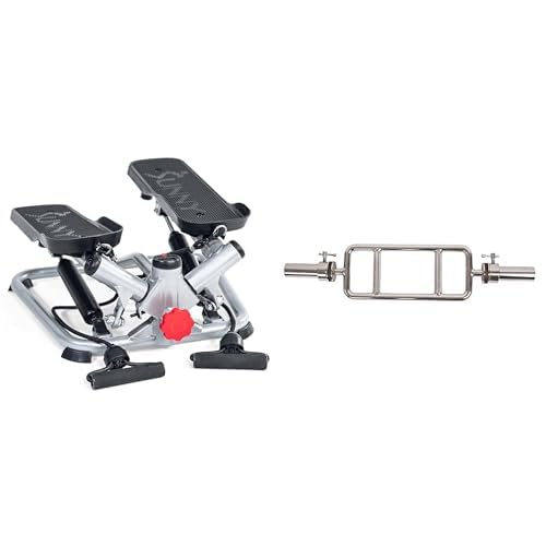 Sunny Health & Fitness Advanced Twist Stepper Machine with Resistance Bands - SF-S0979 + Olympic Triceps Bar with Ring Collars, Olympic Weight for Weightlifting and Bodybuilding