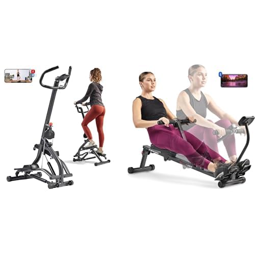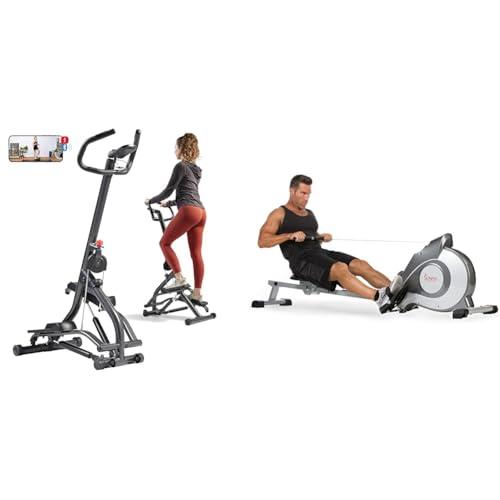 Sunny Health & Fitness Stair Stepper w/Handlebar, Extended Step Range Machine + Sunny Health & Fitness 12 Adjustable Resistance Rowing Machine Rower w/Digital Monitor