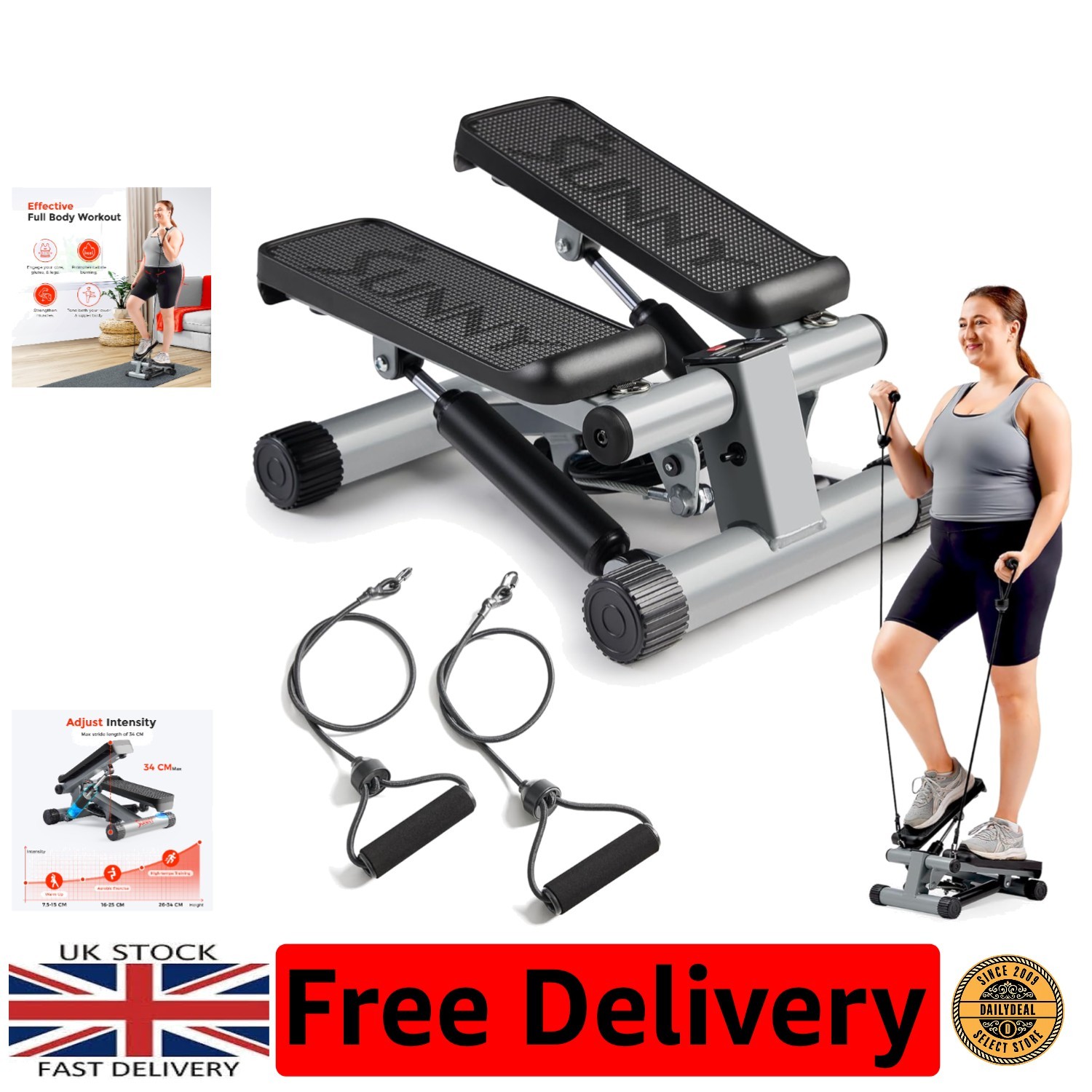 Sunny Health & Fitness Advanced Twist Stepper Machine with Resistance Bands, Portable Mini Stair Stepper Aerobic Indoor Exercise Equipment for Full Body Workout - SF-S0979, Grey