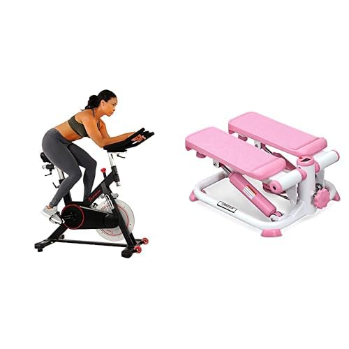 Sunny Health & Fitness Exercise Stepping Machine, Portable Mini Stair Stepper for Home or Office Workouts + Indoor Studio Cycle Pro Exercise Bike with 18 KG Flywheel and Chain Drive