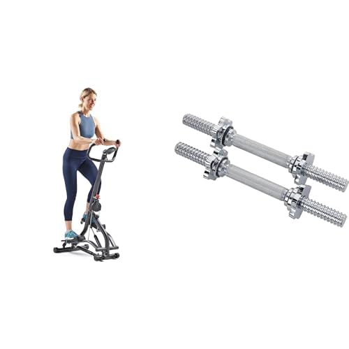 Sunny Health & Fitness Stair Stepper w/Handlebar, Extended Step Range Machine + Sunny Health & Fitness 35.5 cm (14") Threaded Chrome Dumbbell Bar