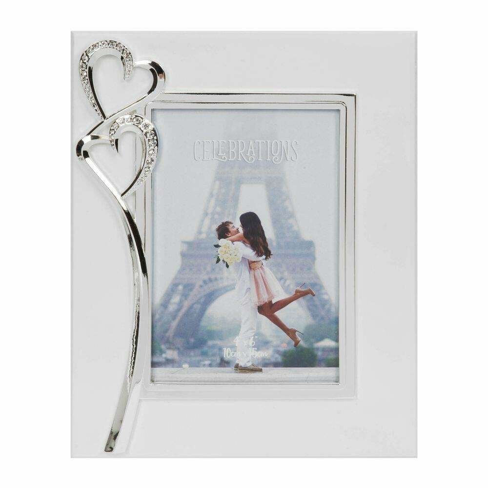 Double Heart Silver Picture Frame with Square Etched Diamante Crystals by Hap...