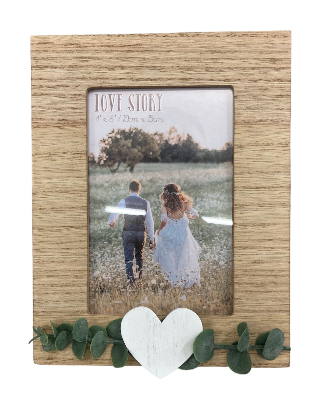 Love Story 4"x 6" Heart & Leaves Decorative Picture Frame - Couples Wedding Gift
