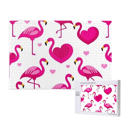 Puzzles for Adults 1000 Pieces, Wooden Jigsaw Puzzles 1000 Pieces, Challenging Puzzle Home Decoration Picture Frame for Family Friends Adults, 29.5x19.7 in, Flamingo Love Heart