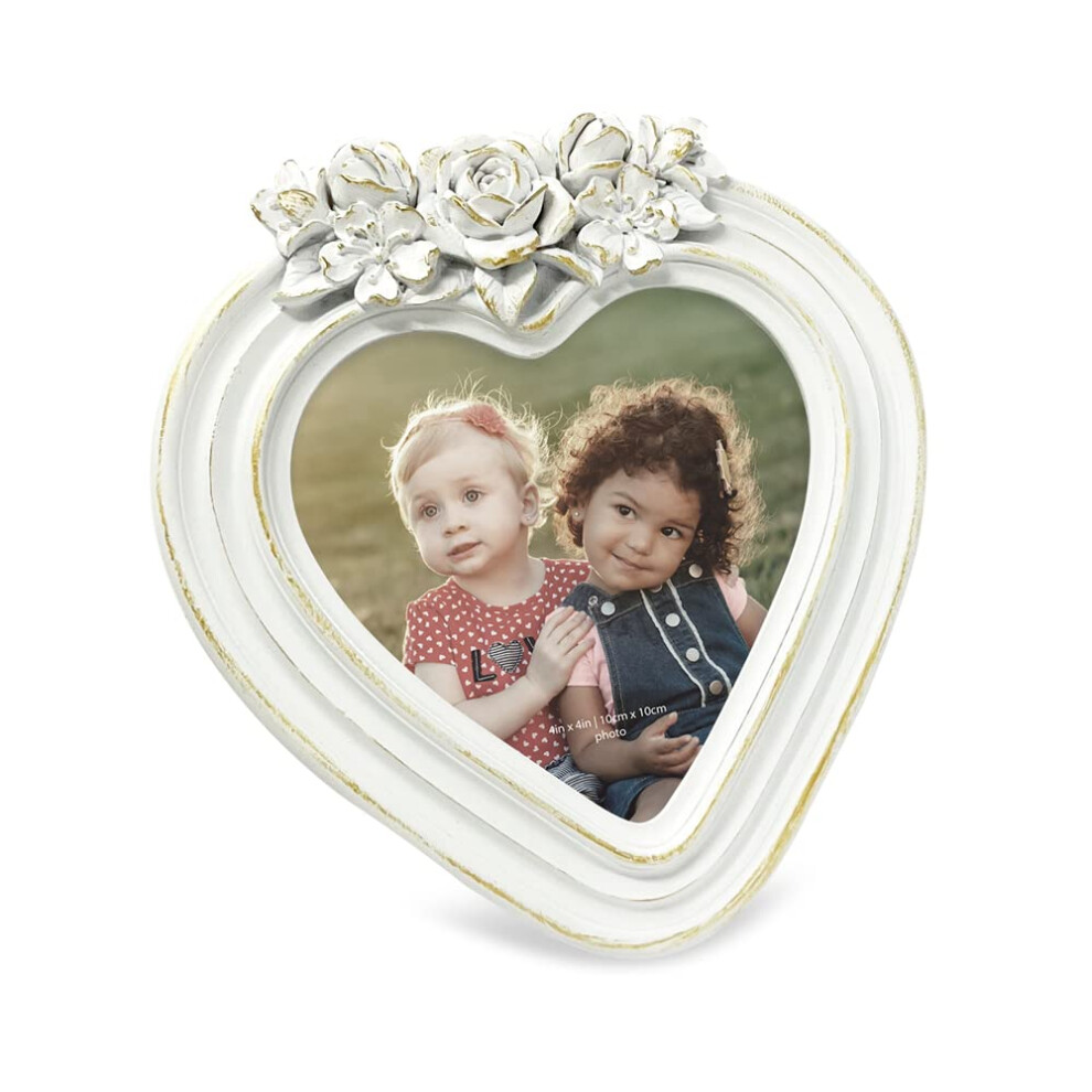 Isaac Jacobs 4x4 Heart-Shaped Resin Picture Frame with Rose Design Decorative Photo Frame Tabletop & Wall Display Hanging Display & Home D?cor (Whi