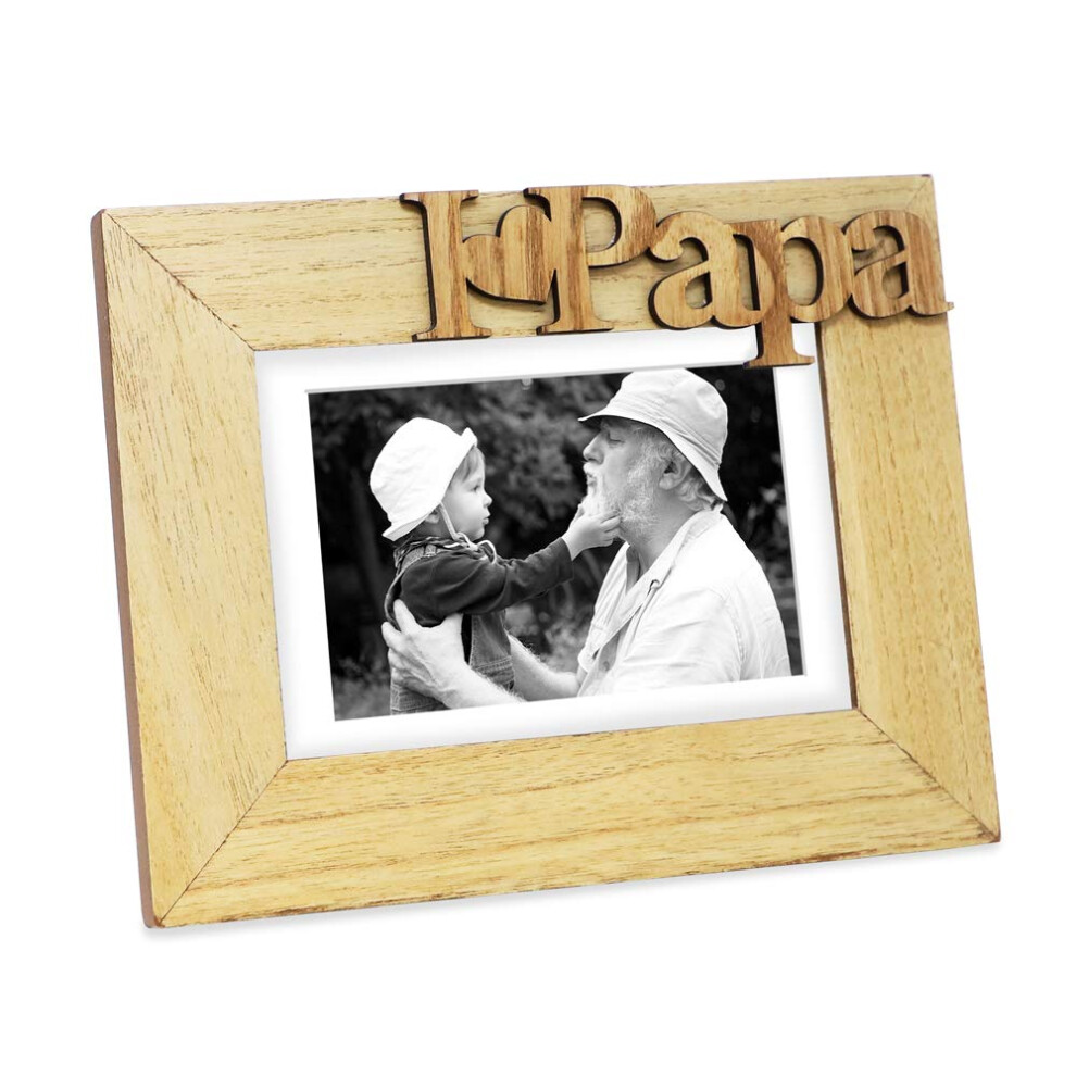 Isaac Jacobs Natural Wood Sentiments I Love Papa / I Heart Papa Picture Frame 4x6 inch Photo Gift for Papa Grandpa Family Display on Tabletop D