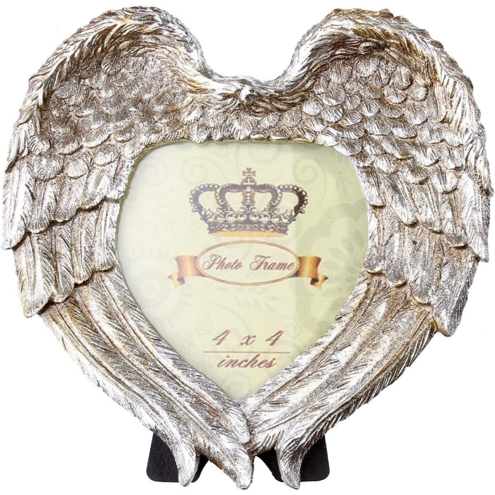 Silver Loving Heart Angel Wing Picture Frame Decorative with High Definition Glass for Table Top Desk Photo Display, 4x4