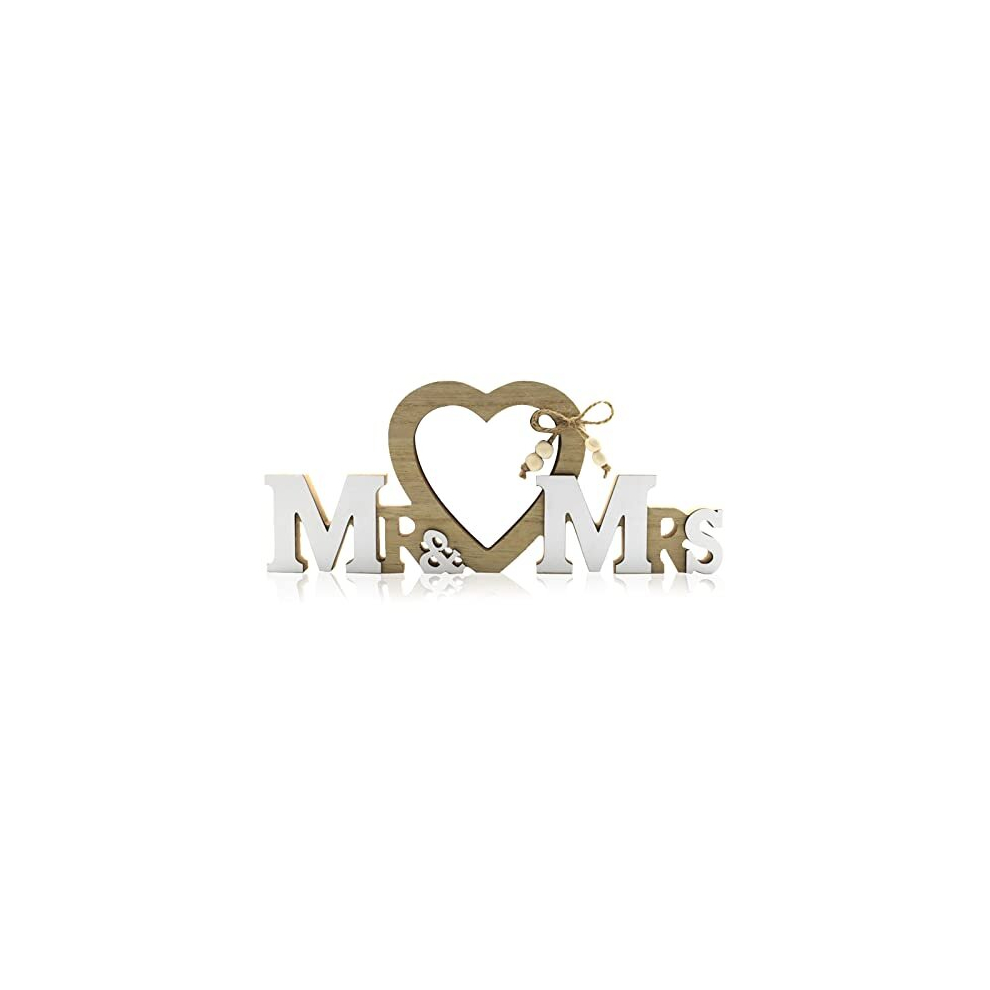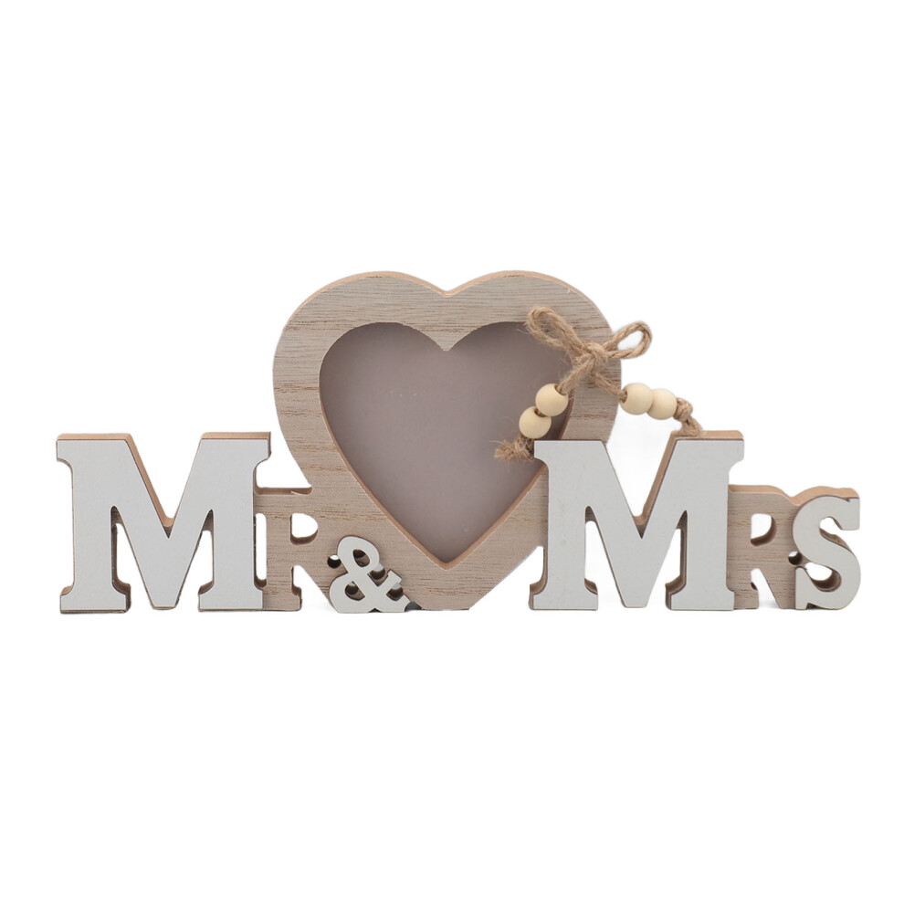 Mr & Mrs Wedding Decorations with Heart Photo Frame, Heart-shaped wooden Picture Frame Wedding Gifts for Couple Bride and Groom Tabletop Picture