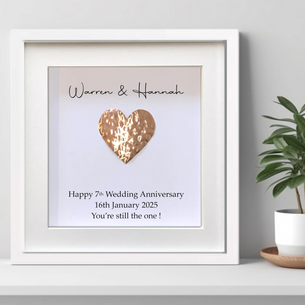 Personalised 7th, 9th, 22nd, Copper Wedding Anniversary, Copper Heart Picture Frame, for her, wife, couples, parents, for him, husband, anniversary