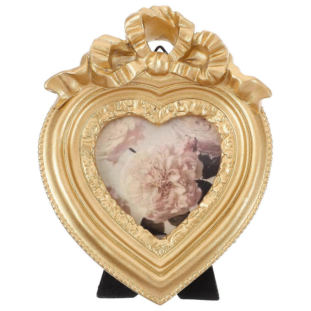 (As show, One size) Antique Heart Shaped Picture Frame Vintage Small Embossed Photo Frame Home Decor