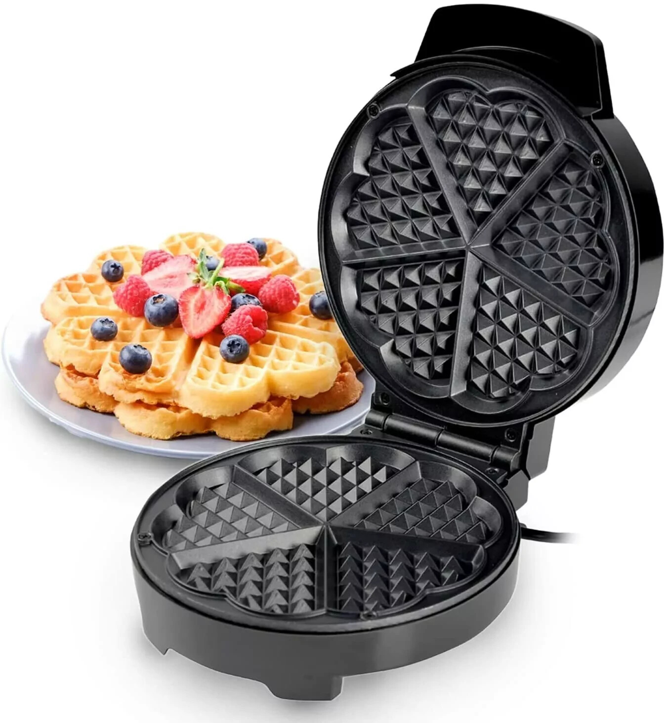 Heart Shaped Waffle Maker/Non Stick Plates, Fluffy Belgian and American Waffles
