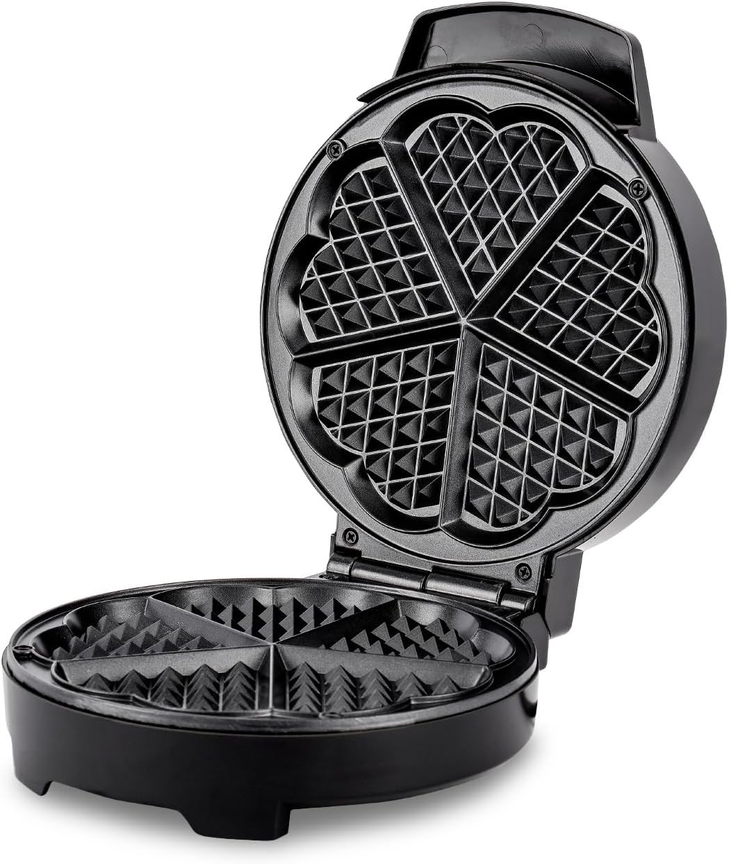 Belgian Heart-Shaped Waffle Maker, Non-Stick Cooking Plates, 5 Waffles at Once