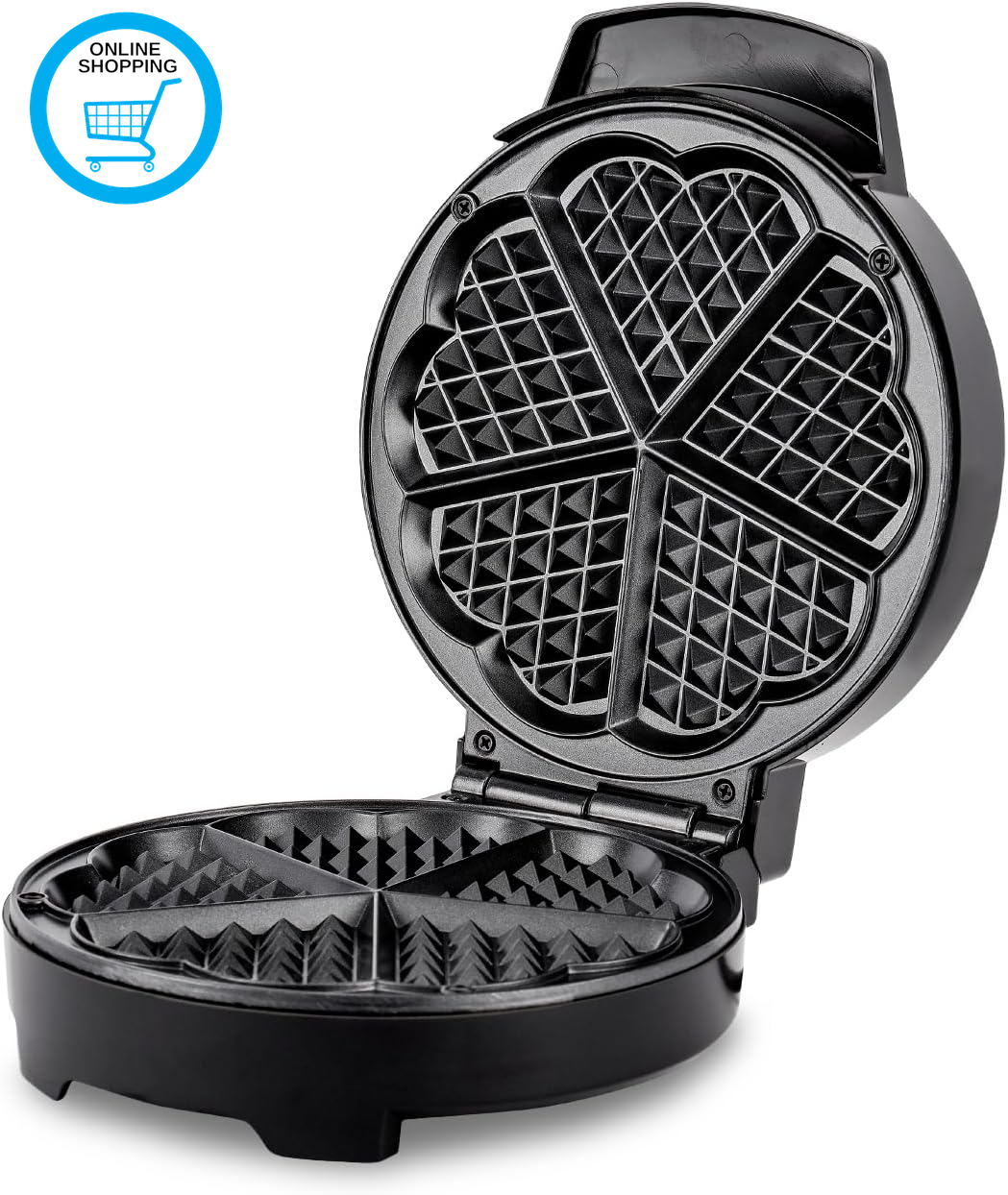 Heart Waffle Maker 4 Belgian Heart Shaped Non-Stick 1400W