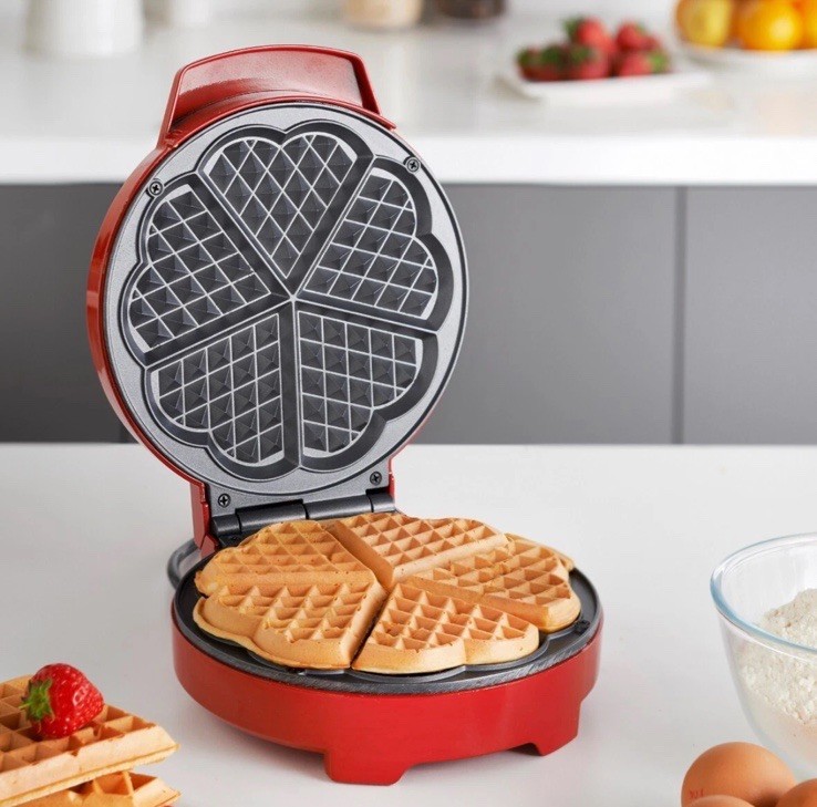 Heart-Shaped Mini Waffle Maker, Belgian Waffles, Compact Design, Deep Fill Non-S