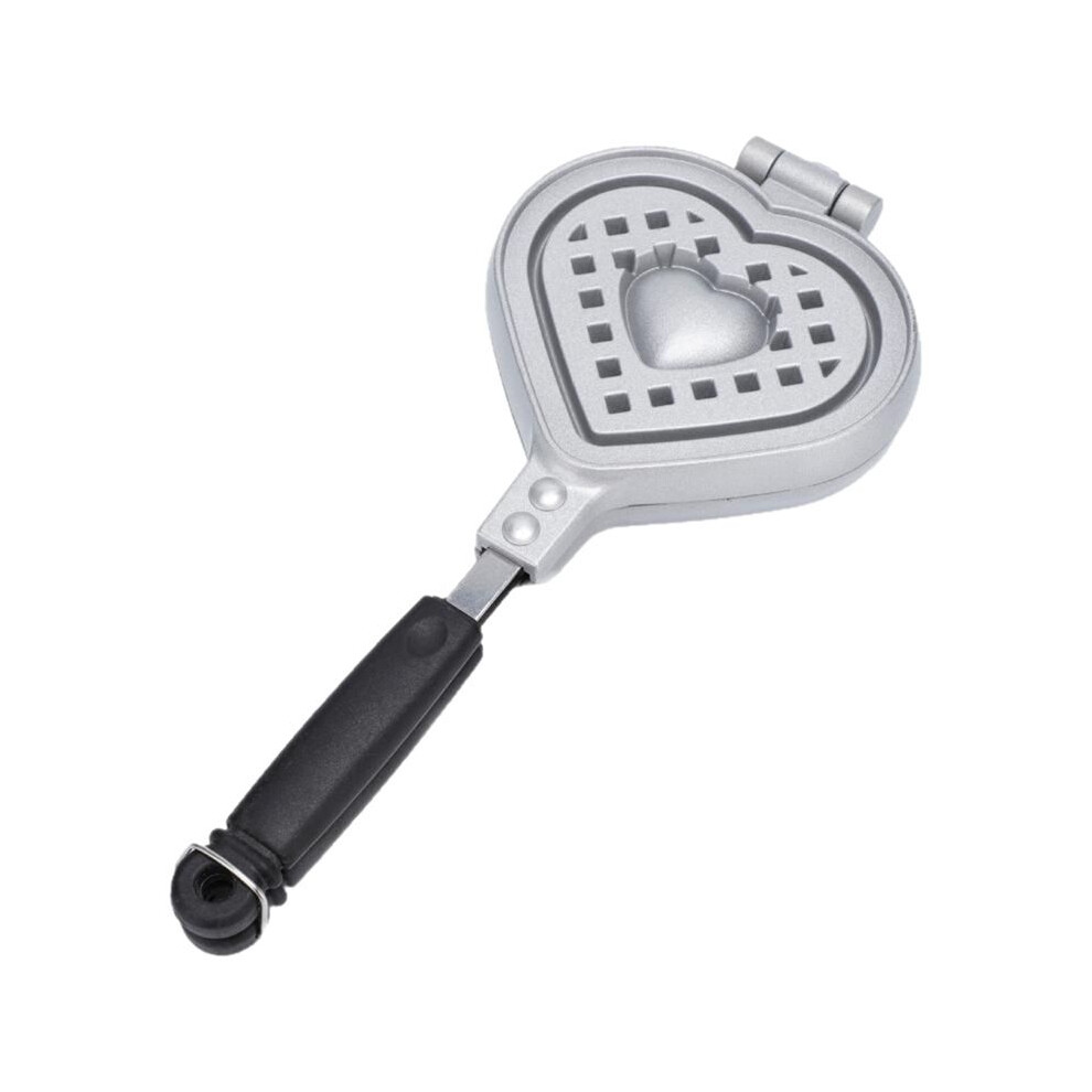 Heart Shaped Waffle Maker Non-Stick Aluminium Alloy Pan with Long Handle for Gas Stove