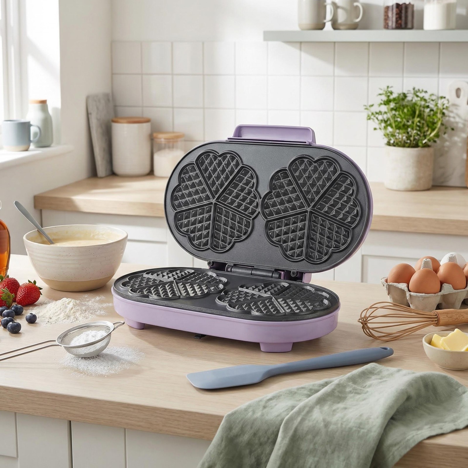 Giles & Posner Double Heart Waffle Maker – 34cm, PFAS-Free, 1400W, Purple