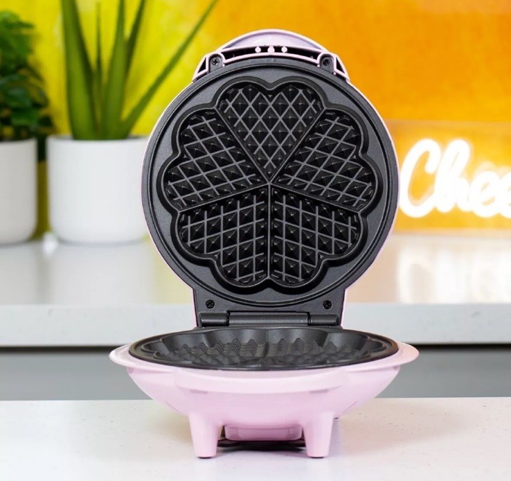 Heart-Shaped Mini Waffle Maker, Belgian Waffles, Compact Design, Deep Fill Non-S