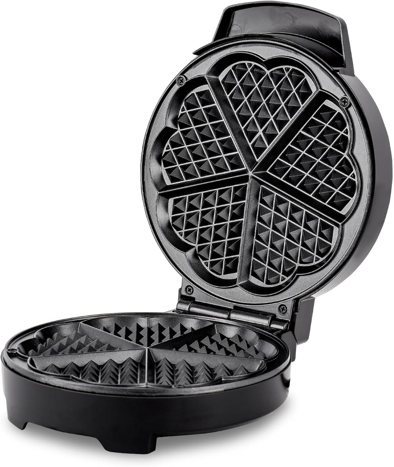 Heart Shaped Waffle Maker, 1400W, Stainless Steel, Compact Black