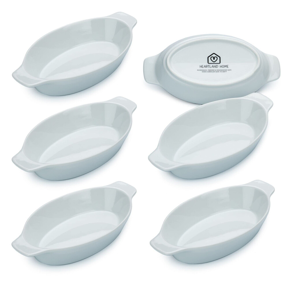 Heartland Home Porcelain Mini Casserole Dish Oval (6pc Set). Cauliflower Au Gratin Baking Dish Banana Split Bowls Single Serving Small Individual