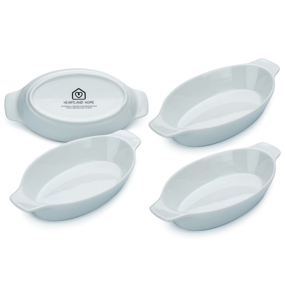 Heartland Home Porcelain Mini Casserole Dish Oval Au Gratin Dish (4pc Set). Cauliflower Baking Dish Banana Split Bowls Single Serving Dishes Small