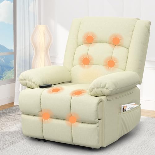 Lift Chair Recliners for Elderly, Recliner Chair with Massage and Heat, Extended Footrest, Heavy Duty Motor Adjustable Reclining Armchair Upholstered Sofa Couch With 2 Side Pockets & Remote control