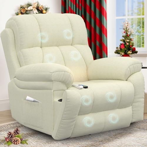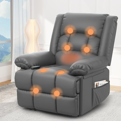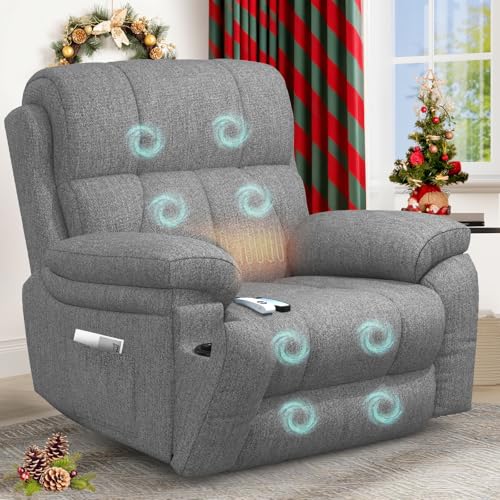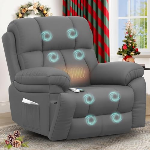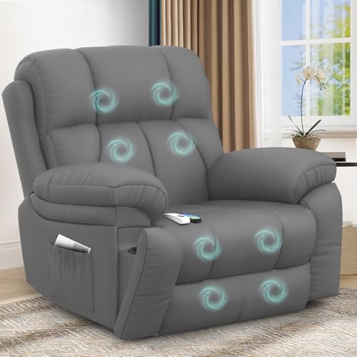 Bonnlo Chair Recliners, Recliner Chair with Massage & Heat, Oversized Recliners Armchair Lounge Sofa Adjustable Leg Rest, Side Pocket, for Home Living Room Theatre (Grey Fabric)