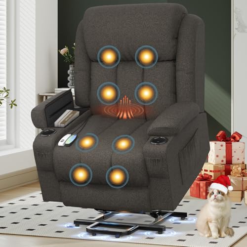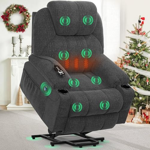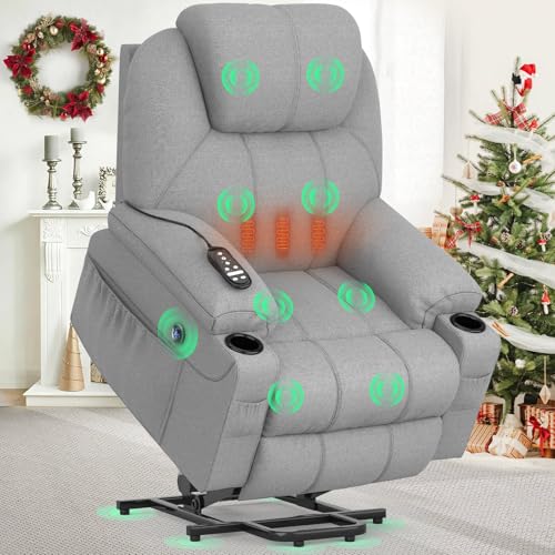 Miyemo Lift Chair Recliners for Elderly, Power Recliner Chair with Massage & Heat, Extended Footrest, Fabric Recliner Sofa with Side Pocket, Grey