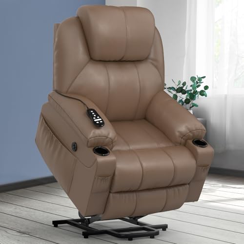Miyemo Lift Chair Recliners for Elderly, Power Recliner Chair with Massage & Heat, Extended Footrest, Fabric Recliner Sofa with Side Pocket, Brown