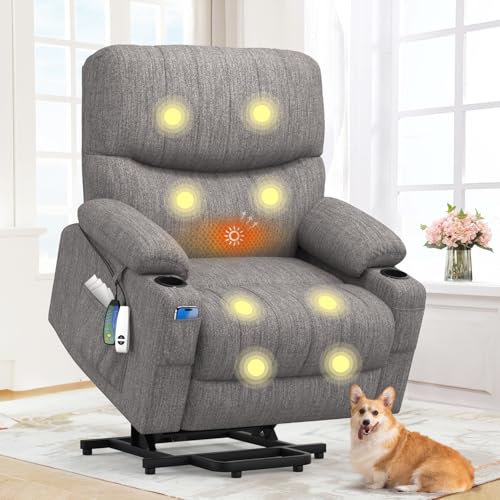 BareTay Lift Chair Recliners for Elderly, Recliner Chair with Massage&Heat, Extended Footrest, Oversized Recliners Armchair Lounge Sofa with Type C+USB Ports (New Gray)