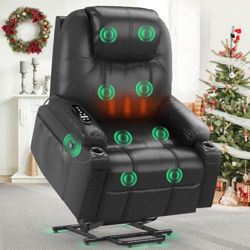 Merax Large Power Lift Recliner Chairs with Massage and Heat Breathable Faux Leather Electric Lift Chairs for Elderly, Heavy Duty Big Man Recliners Power Reclining Chair with USB Port
