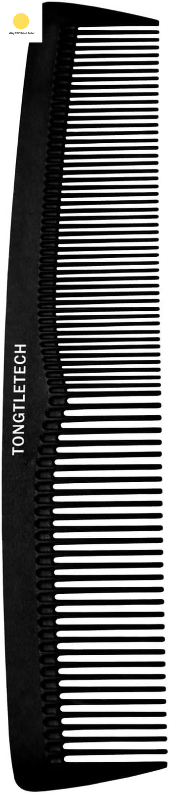 TONGTLETECH Hair Comb - a Professional Anti-static Carbon Fibre Metal-Pin Tail Comb,Heat Resistant Barber and Salon Rattail Comb with Non-skid Paddle Parting Comb,Fine Tooth in Black