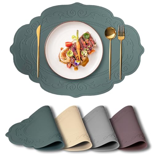 Siliconety Silicone Placemat Dining Table Mats Set of 4 Heat-Resistant Silicone Mat for Kitchen Worktop Protector Dining Table Restaurant Outdoor 30 * 43cm (comb)