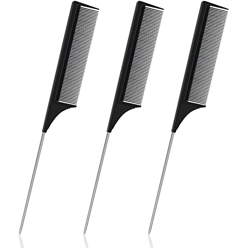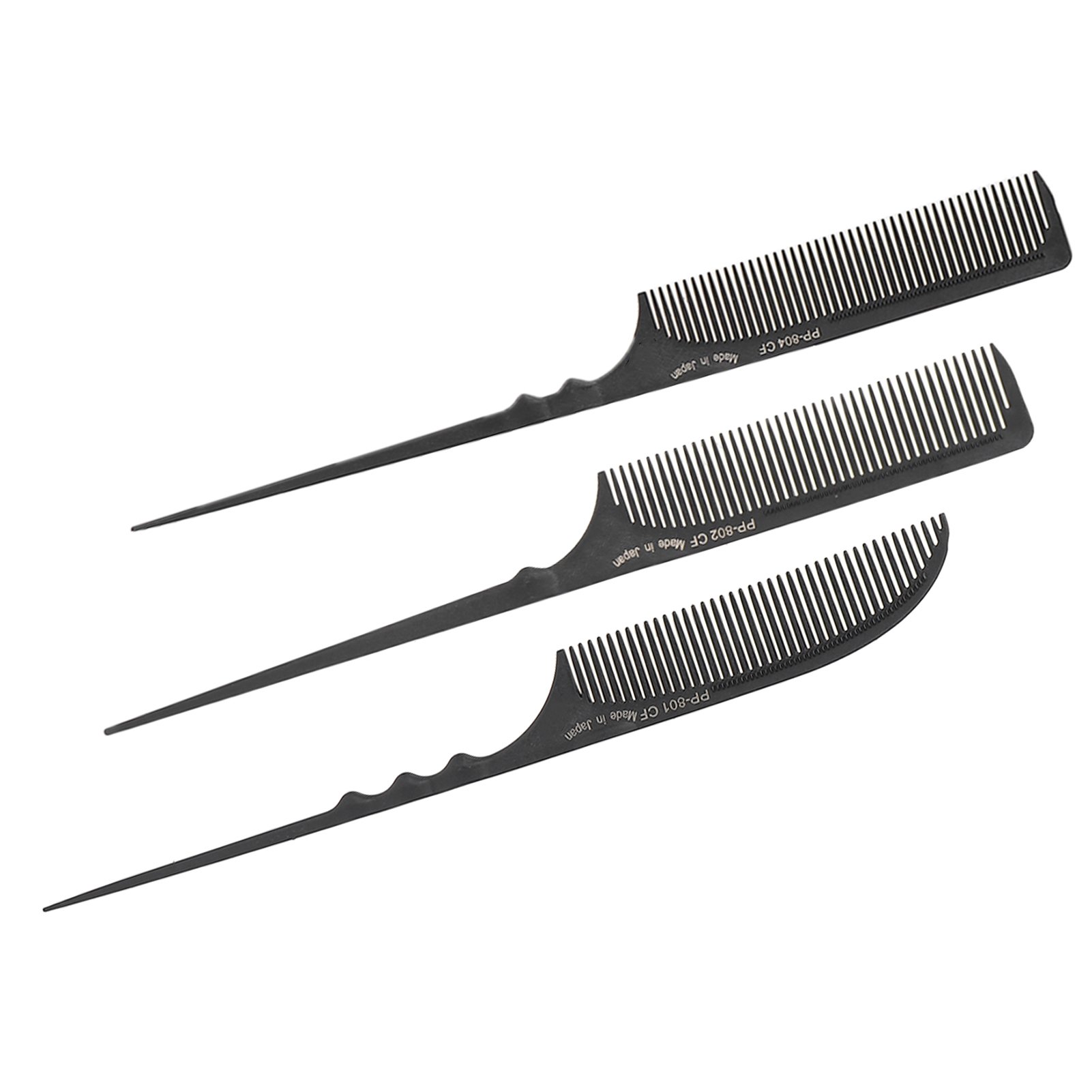 Sularpek Carbon Fibre Tail Comb - 3 Piece Set, Anti Static, Heat Resistant, Fine Tooth & Teasing Comb for Women & Men, Black