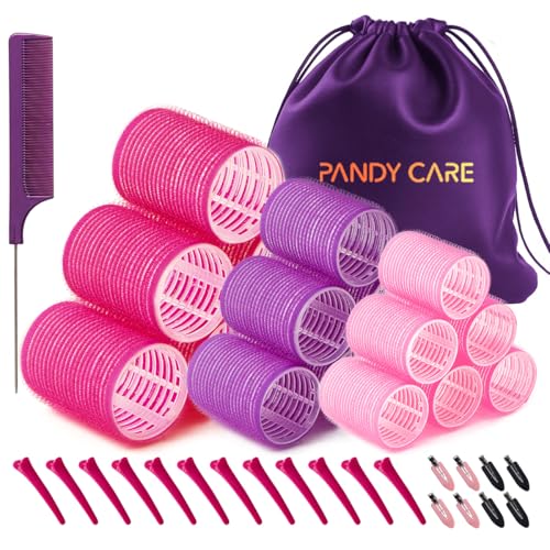 Hair Rollers Set 40 PCS, PandyCare Hair Rollers For Long & Short - No Heat, Hair-friendly, Natural Effect, Includes 18 Rollers (1.73+1.41+0.98 inch), 20 Clips,1 Rat Tail Comb 1 Storage Bag