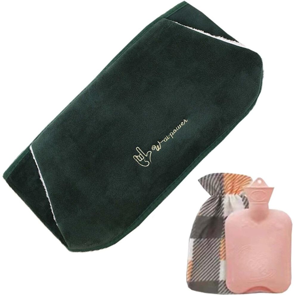 Hot Water Bottle with Hand Warmer and Waist Cover, Heat Pack for Menstrual Cramps, Neck and Back Pain, Green