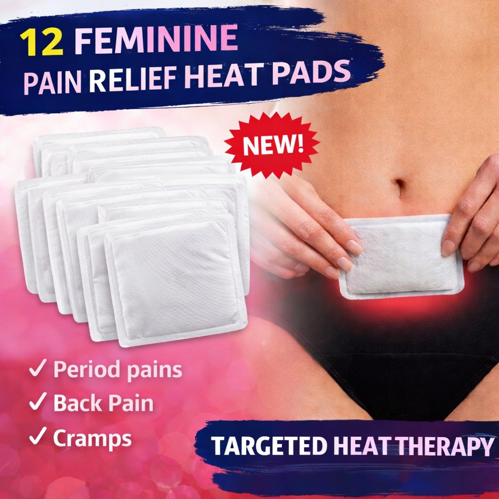 PACK OF TWELVE FEMININE PAIN RELIEF HEAT PADS FOR MUSCLE BACK CRAMPS PERIOD PAIN