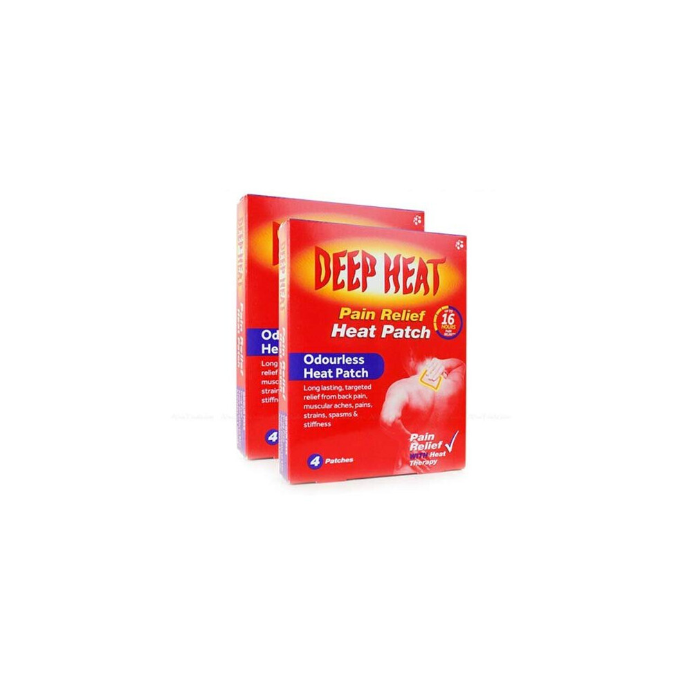 Deep Heat Pain Relief Patch Pads Back Muscle Strain Stiffness Pack 2 x 4 Patches