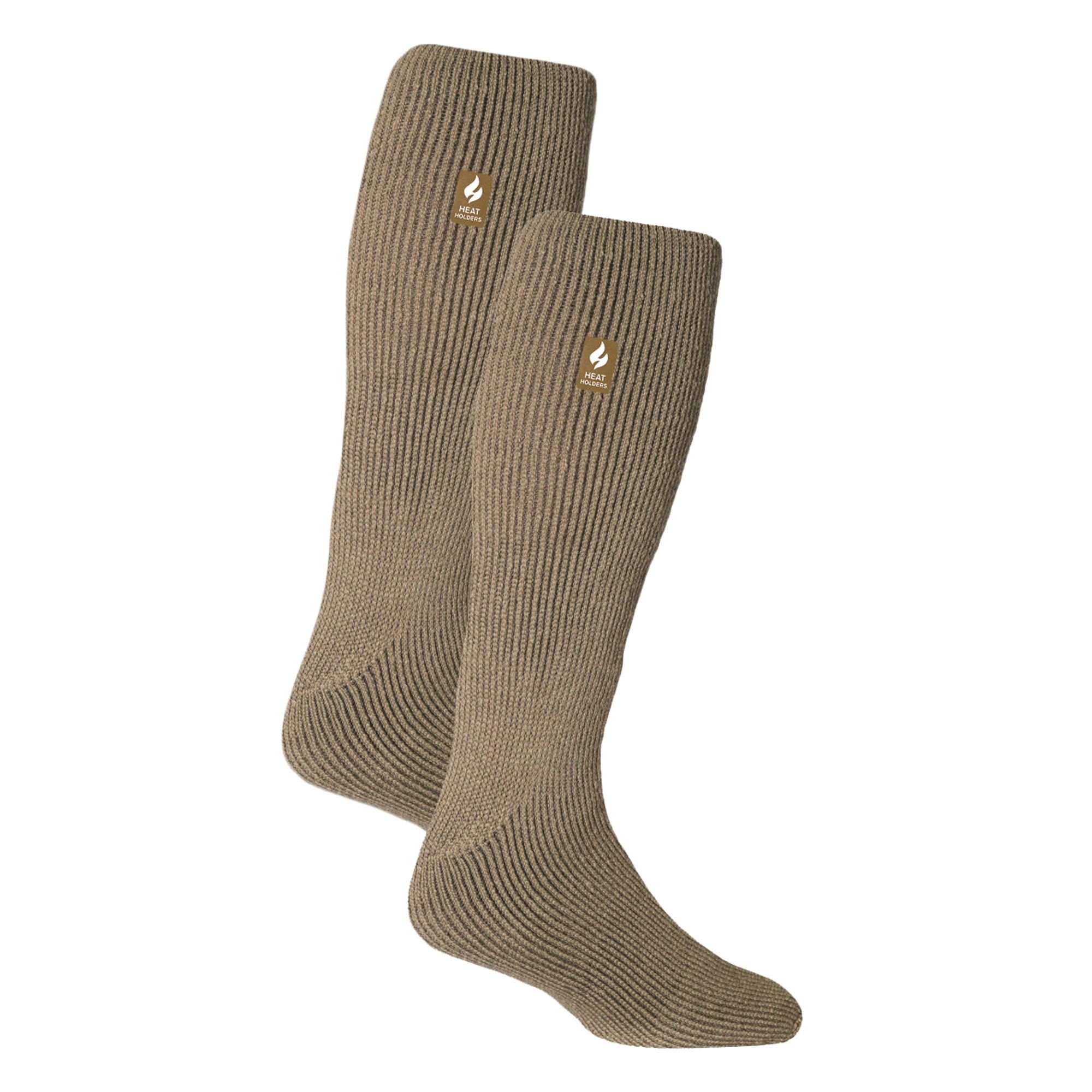 Heat Holders 2 Pack Mens Extra Long Knee High Ski Socks - Brown - Size UK 6-11